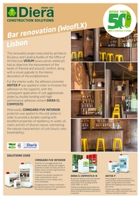 For the interior walls, the adhesion promoter ADITEK P was applied in order to increase the adhesion on the supports, with the subsequent application of cork agglomerate plates by double bonding with high performance adhesive cement DIERA CL COMPOSTO .