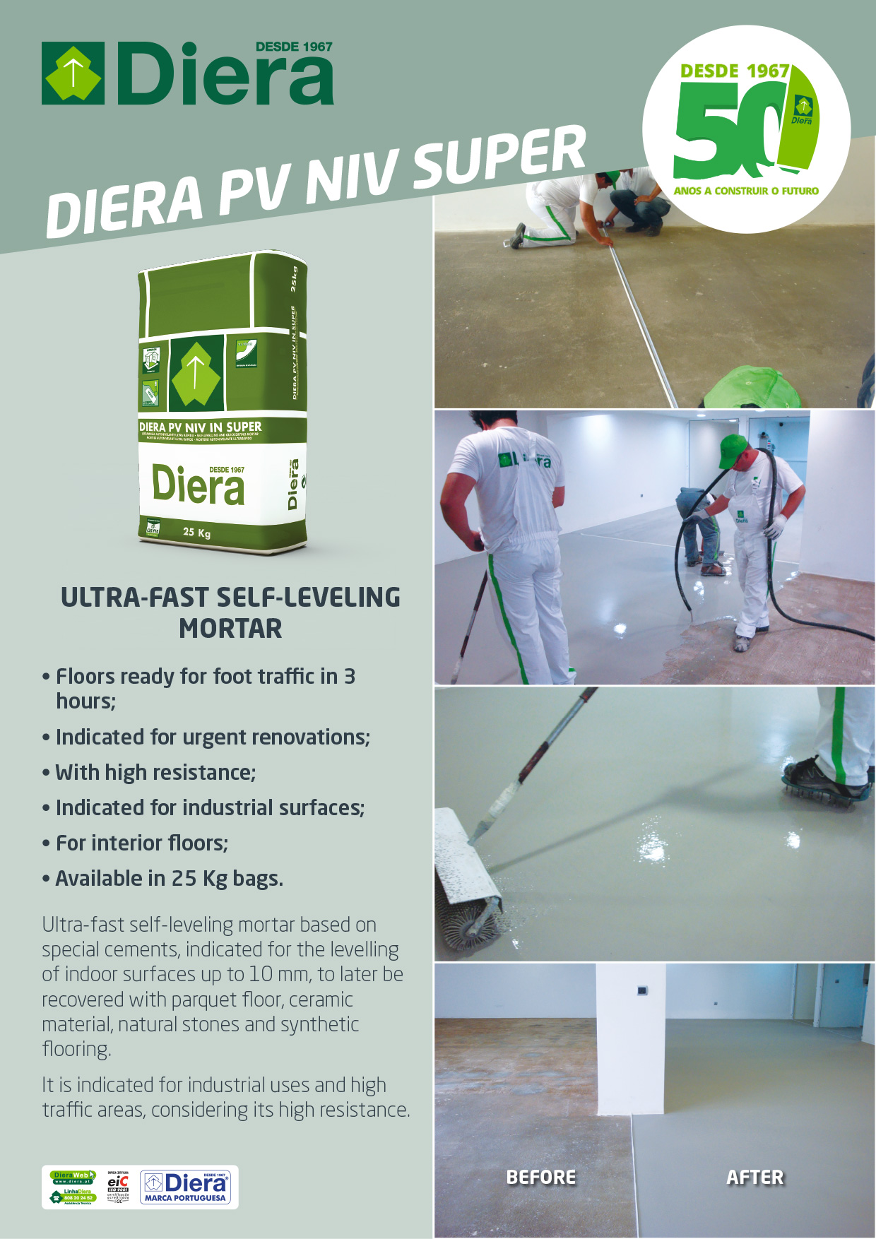 Ultra-fast self-leveling mortar based on special cements, indicated for the levelling of indoor surfaces up to 10 mm, to later be recovered with parquet floor, ceramic material, natural stones and synthetic flooring.